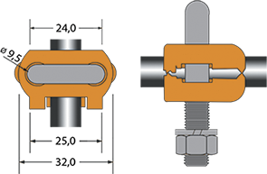 Permite conectar um condutos a 90° em relação a haste, parafusos em aço galvanizados a fogo.